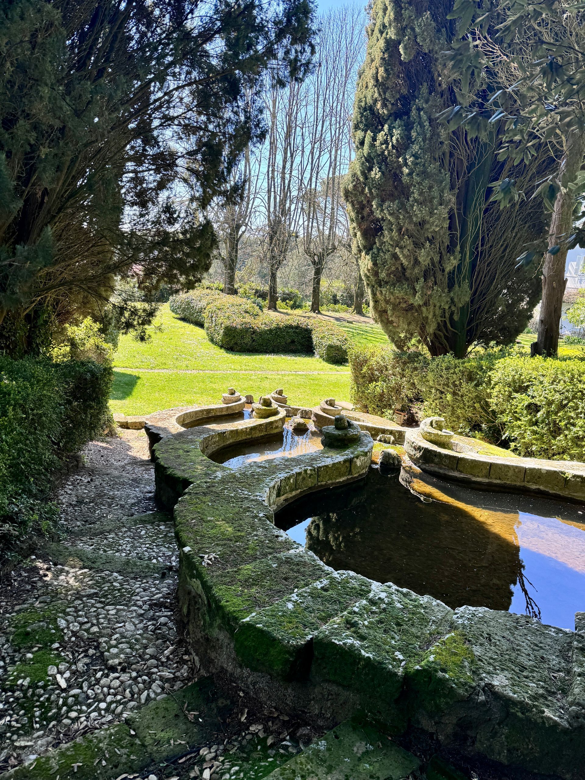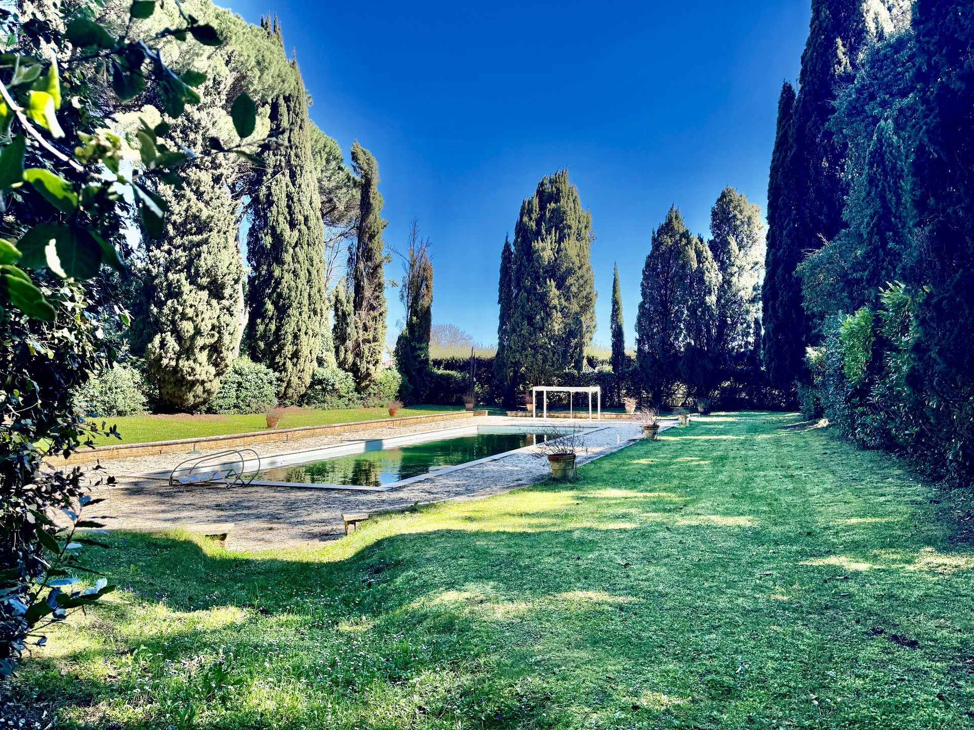 Outside, the gardens unfold in every direction. Guests can wander through Villa Lina’s symbolic and botanical pathways, relax under centuries‑old trees, or spend the afternoon at the estate’s remarkable Olympic mineral‑water pool, built in 1929 and fed by natural springs. The atmosphere is peaceful, restorative, and deeply connected to the rhythms of the land.