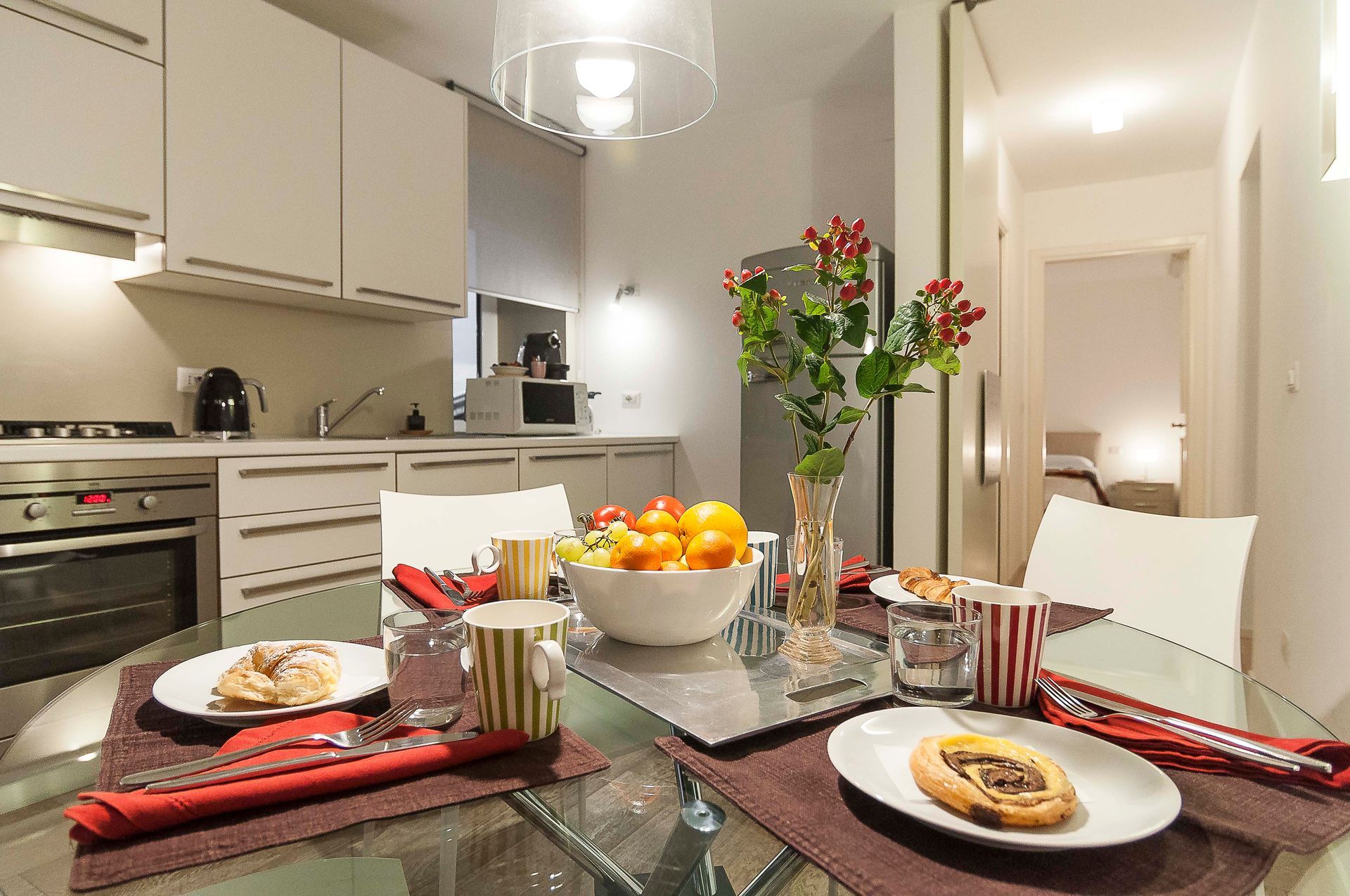 The apartment is quiet, has all the mod cons, including WIFI, microwave, automatic espresso machine, clothes washer, dishwasher, plus a portiere and an elevator.