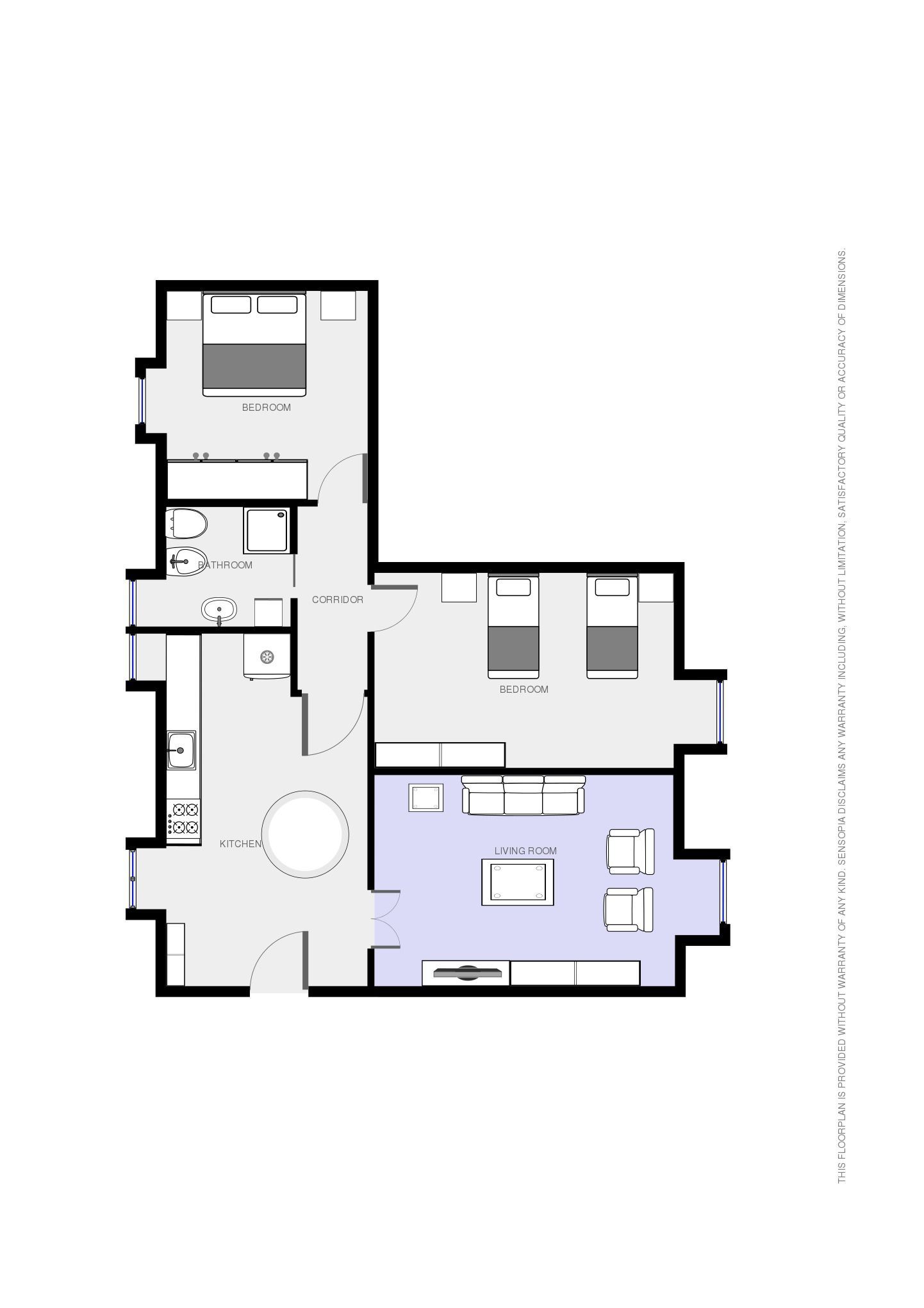 Live a real Rome experience. Just off the Piazza Lucina on the first floor of this 17th century Palazzo is this spacious and elegant 110 sq.mt. two bedroom apartment with living room, plus separate kitchen with dining area seating 4. Large double-glazed windows provide both silence and plenty of light. A beautiful new bathroom with roman tiles, and bright modern kitchen complete the picture.