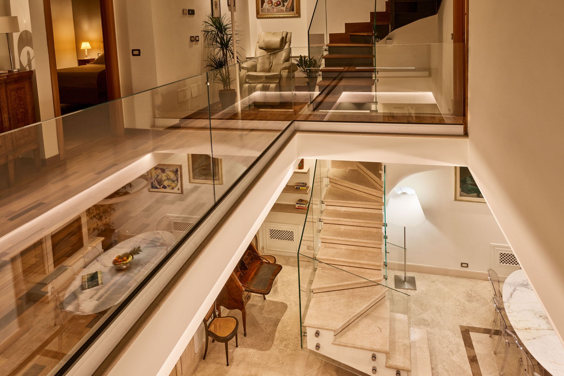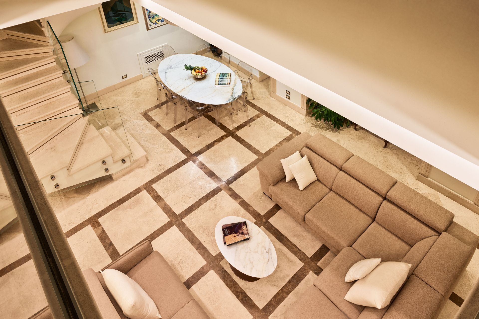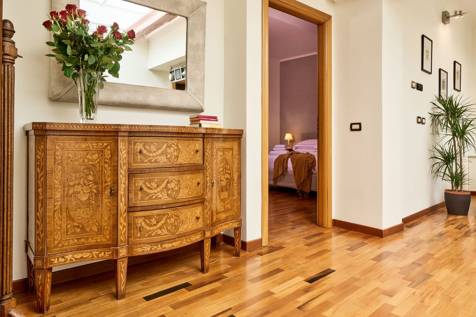 Dimora Trevi spans an entire floor of a historic 17th-century building, offering over 300 square meters of beautifully restored interiors. With soaring ceilings, original frescoes, and stately proportions, the space evokes the grandeur of a bygone era while embracing modern luxury.