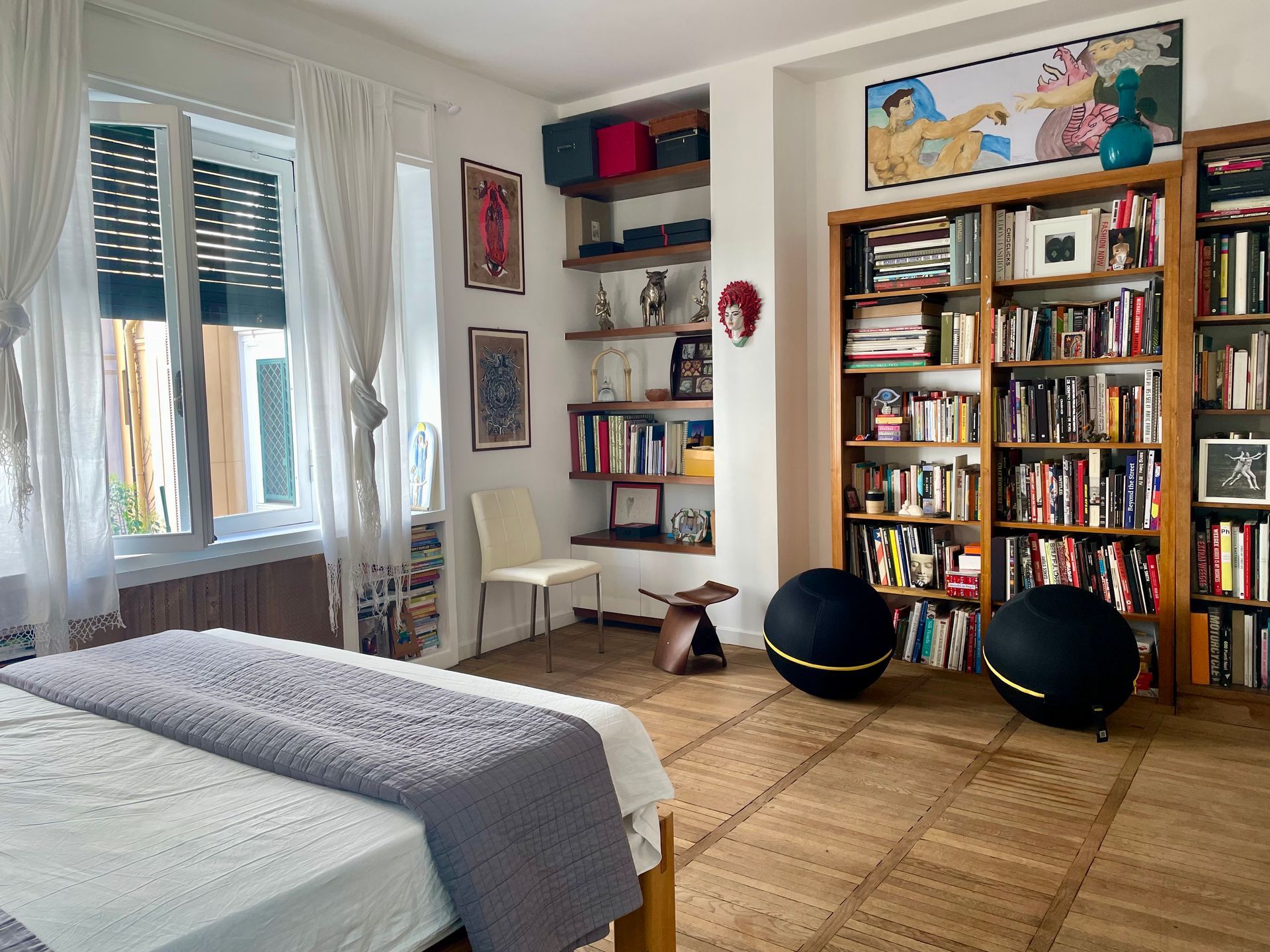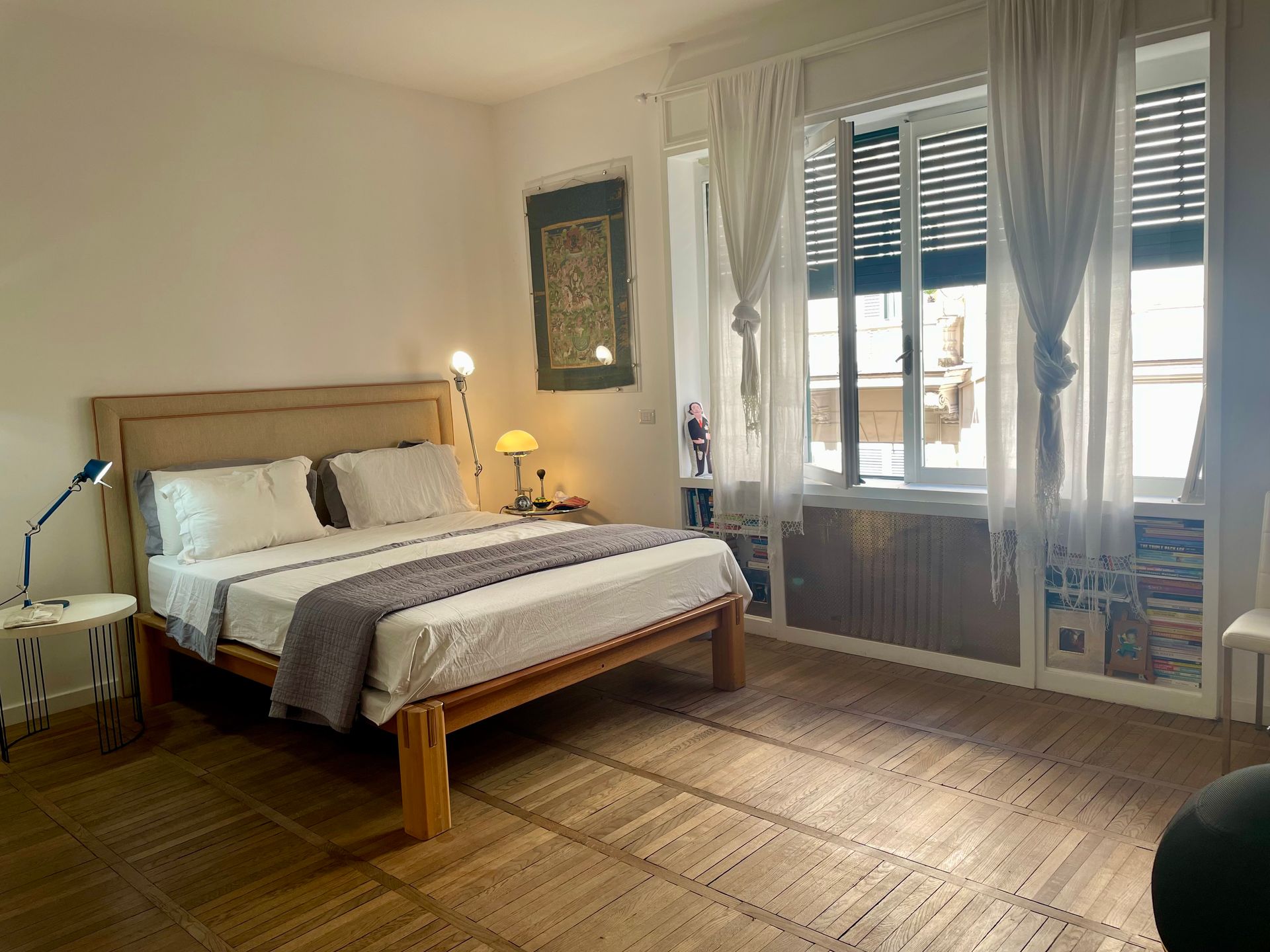 This apartment is perfect for a family stay in the Eternal City. On the second floor, it offers a outdoor space on balcony, 2 bedrooms, 2 bathrooms, one with shower and with a bathtub. A full kitchen gives you everything you need for authentic Roman living. It sleeps 3 adults in comfort, or a family with two children.