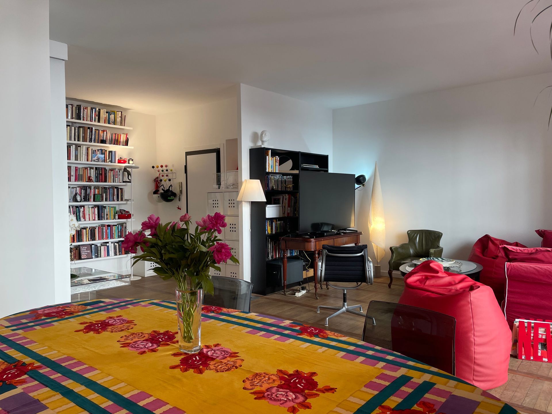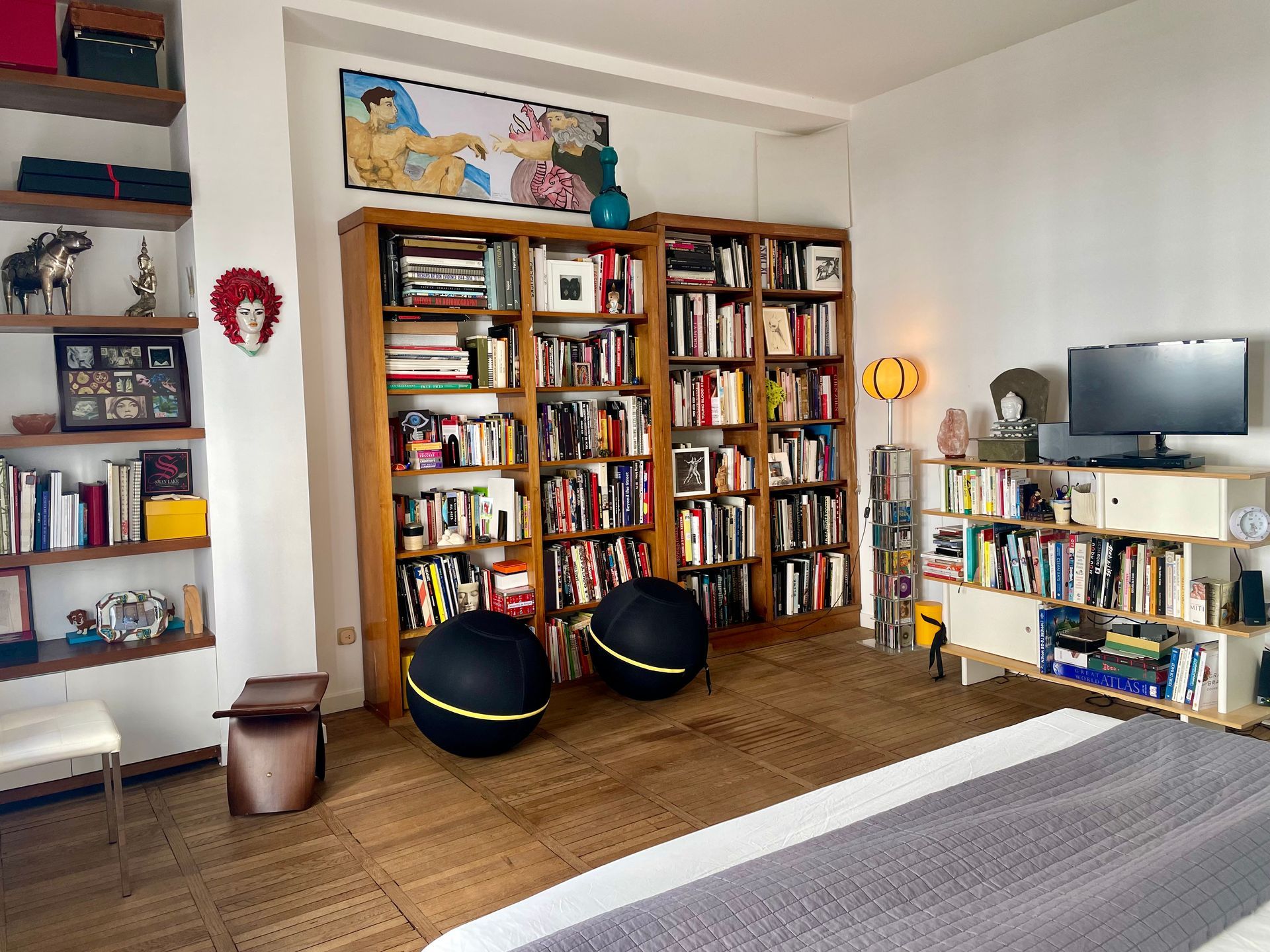 The living room has comfortable couches, iconic art books, and designer chairs. You will find a stereo and TV with satellite cable, offering International channels. The dining table sits 6. The adjoining kitchen has all amenities including electric water boiler, and coffee maker. Of course, there is a full cooking stove, a dishwasher, a large fridge, and much more.