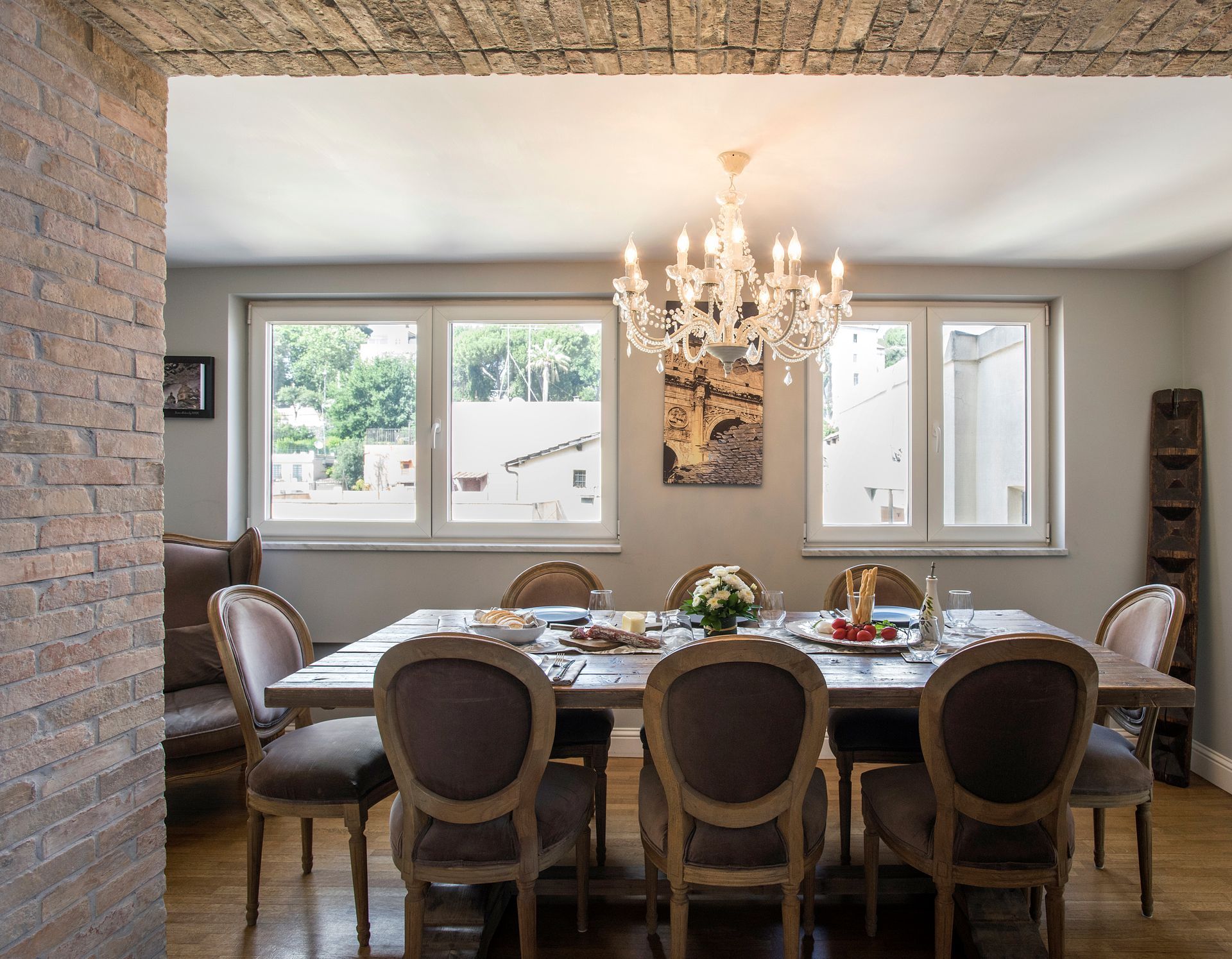 The apartment was designed by an artist and architect. Her talents and artistic sensitivity show in every corner. She has filled the home with carefully-sourced vintage pieces restyled and revived to create a chic, and modern aesthetic, melding timbered ceilings, parquet floors, and exposed brick walls.