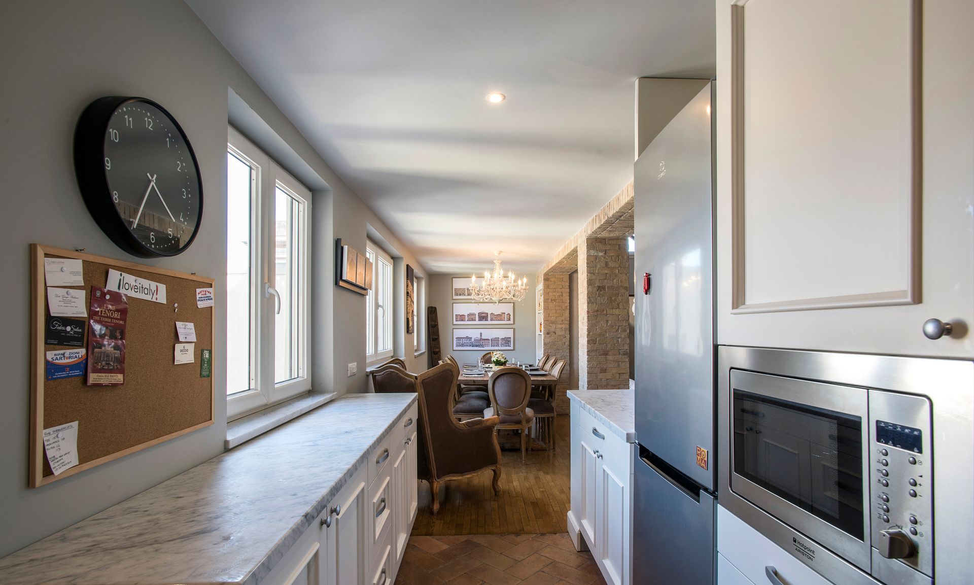 This elegant apartment offers three comfortable bedrooms, two with queen beds, and one with two singles, sleeping up to 5 people, and making it perfect for families or friends. Luxury bedding caresses the dream. Two full bathrooms, with marble sinks and walk-in showers are immaculately new. Of course, it has Wifi and air-conditioning. There is a spotless, high-tech kitchen with large fridge, dishwasher, gas stove an oven, a microwave, and coffee machines, in fact, all the amenities you might dream of having, including a washer/dryer. Add to this the spacious and gracious living area, TV with Netflix, a separate dining area, and the large panoramic terrace and you will have plenty of room for relaxing, socializing, or entertaining. Need a cook? We can book one. Enjoy your coffee on the terrace in the morning to start your day, then later, your aperitivo of a nicely chilled glass of local wine, or your own Spritz to start off the evening, while a limoncello, might be perfect to celebrate your great day. Restaurants nearby abound and we will supply you with a great list of our favourites. We can also book your reservations, your guides, tours, and your transfers.