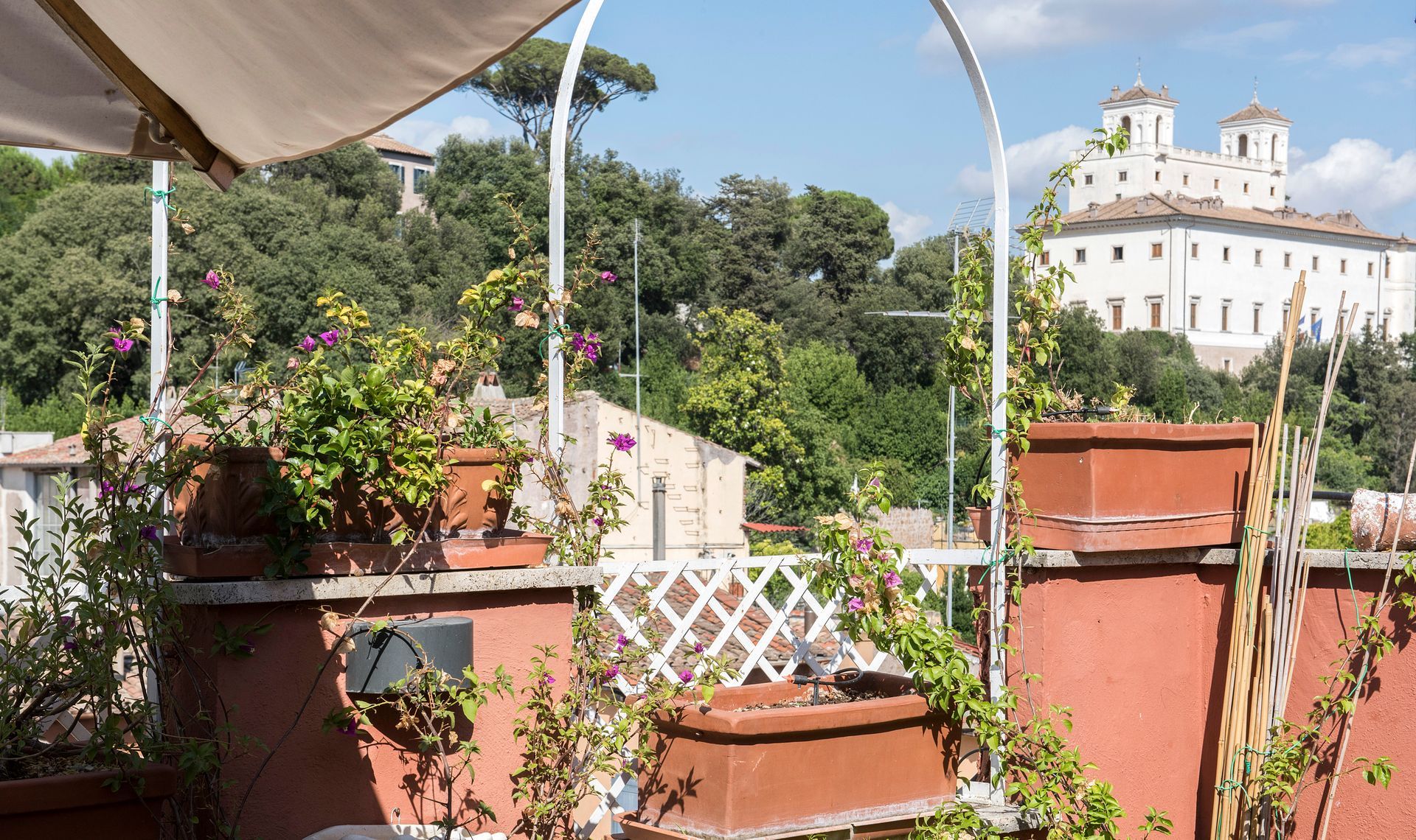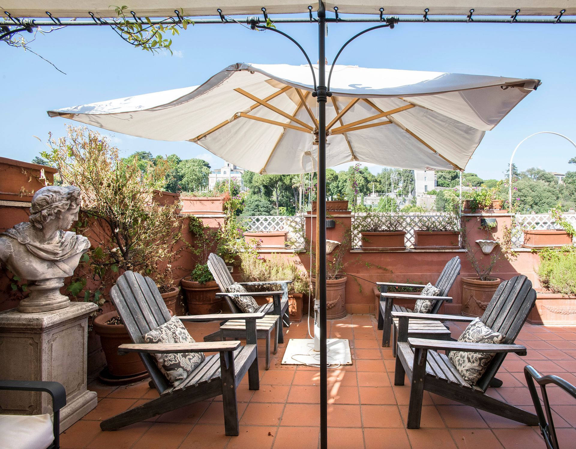 Stylish Spanish Steps Penthouse with Panoramic Terrace on famed Via Babuino, offers three bedrooms, sleeping 5 and looks out over the famed Vila Borghese and Spanish Steps. Perfect for Families and friends. Steps from Shopping and all the sights.