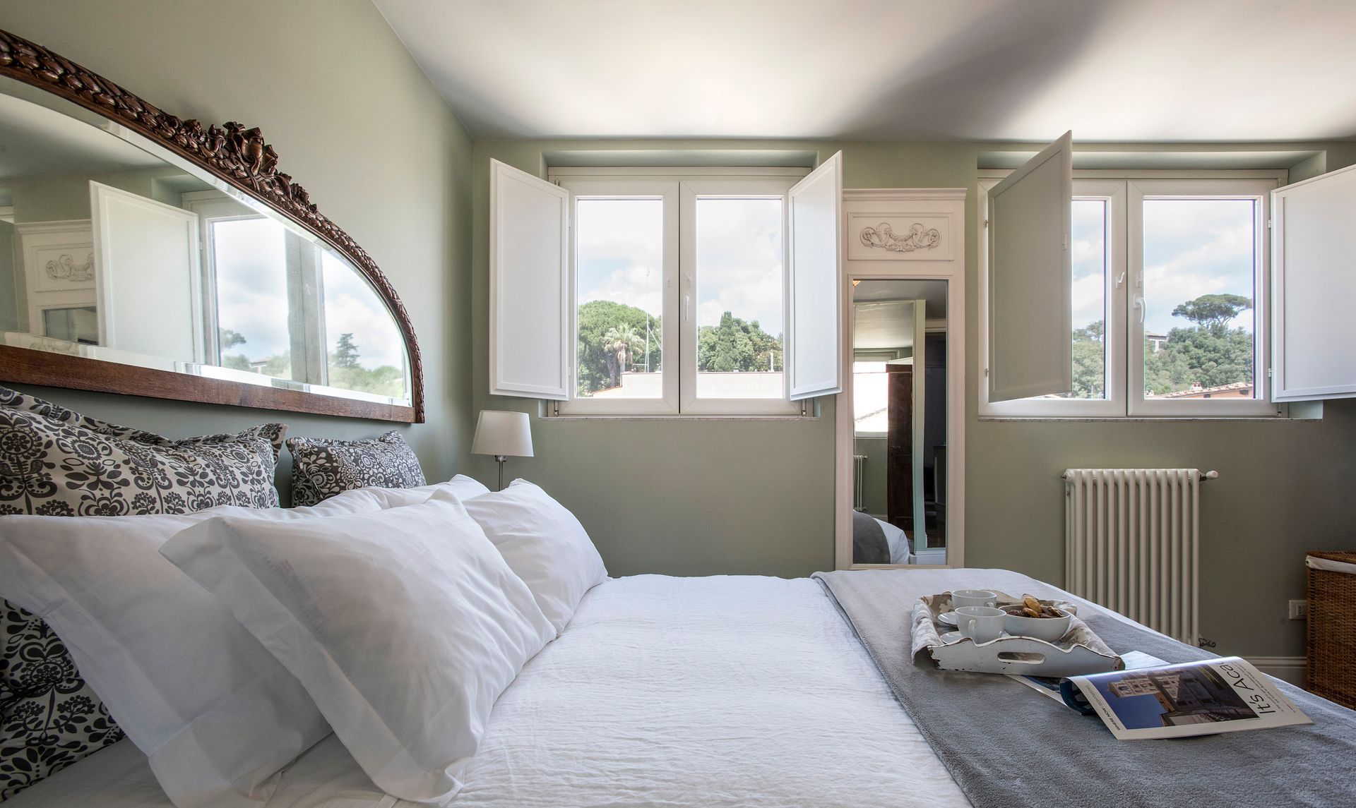 If you have dreamed of a “Roman Holiday” near the Spanish Steps (rather like Audrey Hepburn’s famous film one nearby), then Il Bacio might just make your dream come true. It’s the perfect penthouse complete with private rooftop terrace for Roman outdoor living, and absolutely breathtaking views over Roman rooftops, domes, and the hill up the Spanish Steps, known in Rome as “Il Pincio."