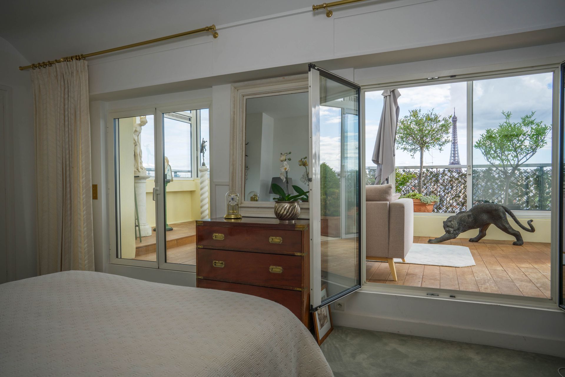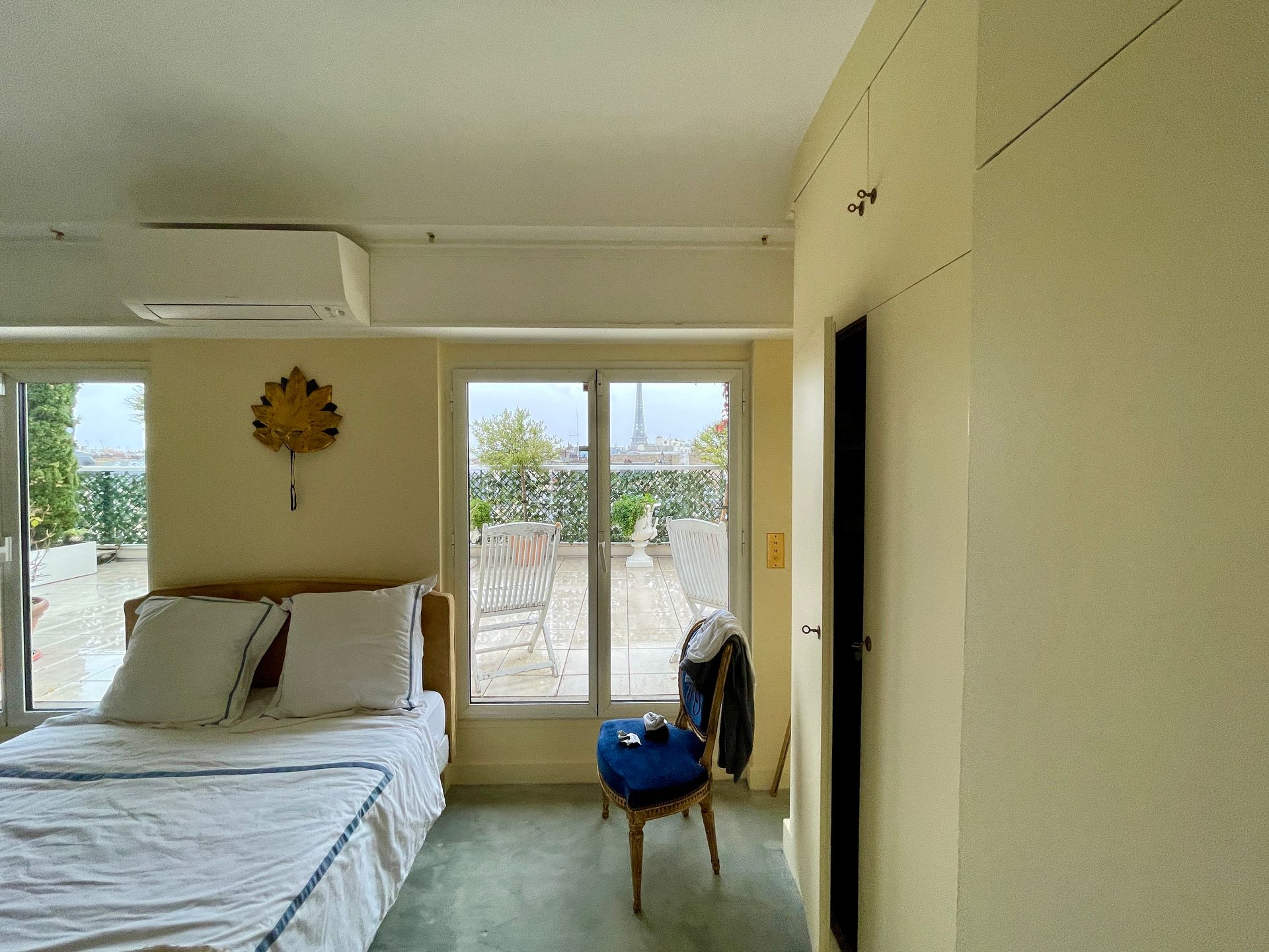 Take the elevator to your magnificent fifth floor Paris Penthouse home, and step into an indulgent world in the sky, looking straight out through a large, wide terrace to a bird's eye view of Paris. This property can accommodate up to 4 guests: either two couples, or a couple and two singles, whether children or adults, in case of the latter a Sofa bed room will be made available.