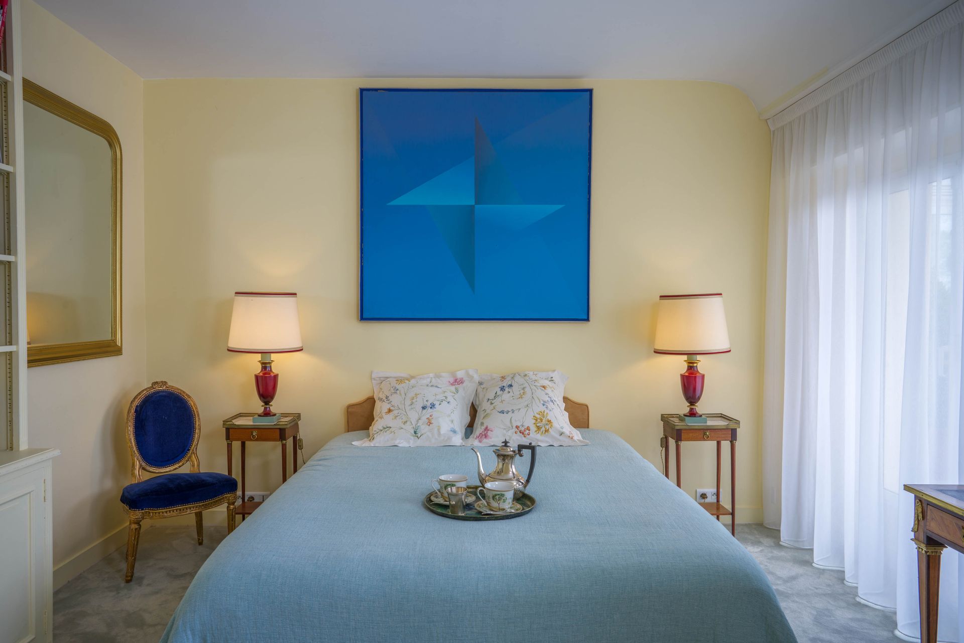 Graced with art, elegantly furnished, and situated in 16th arrondissement. Both Eiffel Tour and Arch de Triumph Views.
