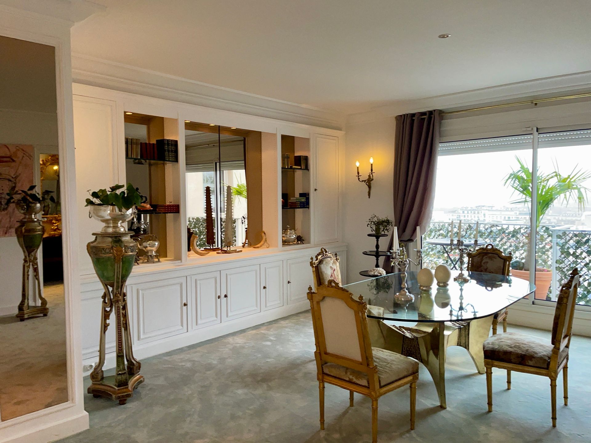 Paris Indulgence is an enormous and hyper-elegant 2 bedroom, 2 bathroom apartment, with separate dining room, double living room, private study which converts to third bedroom, to sleep 4 in comfort, all with terraces to extend their space, light, and views, Graced with art, elegantly furnished, and situated in 16th arrondissement. Both Eiffel Tower and Arch de Triumph views are the jewels in the crown.