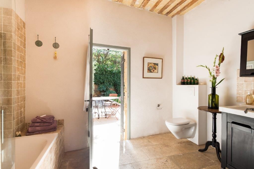 A large airy living area opens onto the garden and shaded terrace, overlooking the crystal clear pool, perfect for a cooling refresher in the midst of a summer's day. The courtyard garden has a second entry through a gate which gives onto a small impasse, perfect for coming in and out with bicycles.