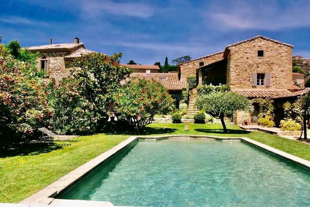 Tranquil haven of Mas du Ciel Blu near Uzès in the charming and quant Medieval village called, the Bastide-d'Engras. Nestled in lush gardens surrounding a sparkling turquoise 13 metre pool and outdoor summer kitchen, this delightful18th century stone farmhouse offers complete privacy as well as everything that you need for a perfect holiday of family or friends. Air-Conditioned. 6 Bedrooms, 5.5 bathrooms, sleeps 12.
