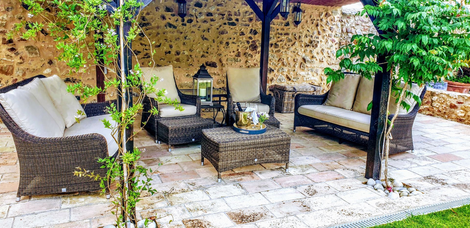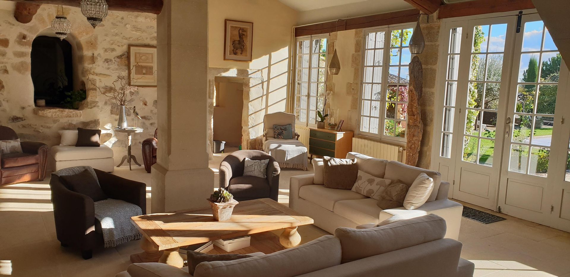 Escape from the hustle of everyday life and unwind in the tranquil haven of Mas du Ciel Blu near Uzès in the charming and quant Medieval village of the Bastide-d'Engras. Nestled in lush gardens surrounding a sparkling turquoise pool 13 metre pool and outdoor summer kitchen, this delightful 18th C stone air-conditioned farmhouse offers complete privacy as well as joyful outdoor living and everything that you need for a perfect holiday of family or friends. The house has been carefully restored to retain its authentic character while providing spacious, stylish, and modern facilities. The property boasts a generous living room, a dining room, and 6 charming and comfortable air-conditioned bedrooms, with 5 Kings, and 1 Twin, sleeping 12. Three of the bedrooms have ensuite shower rooms.and one has its own adjacent bathroom. Two of the bedrooms share a shower room and WC. There is a ground floor WC with a sink, making a total of 5 bathrooms in the house plus a further shower room with WC in the pool house in the garden by the pool.