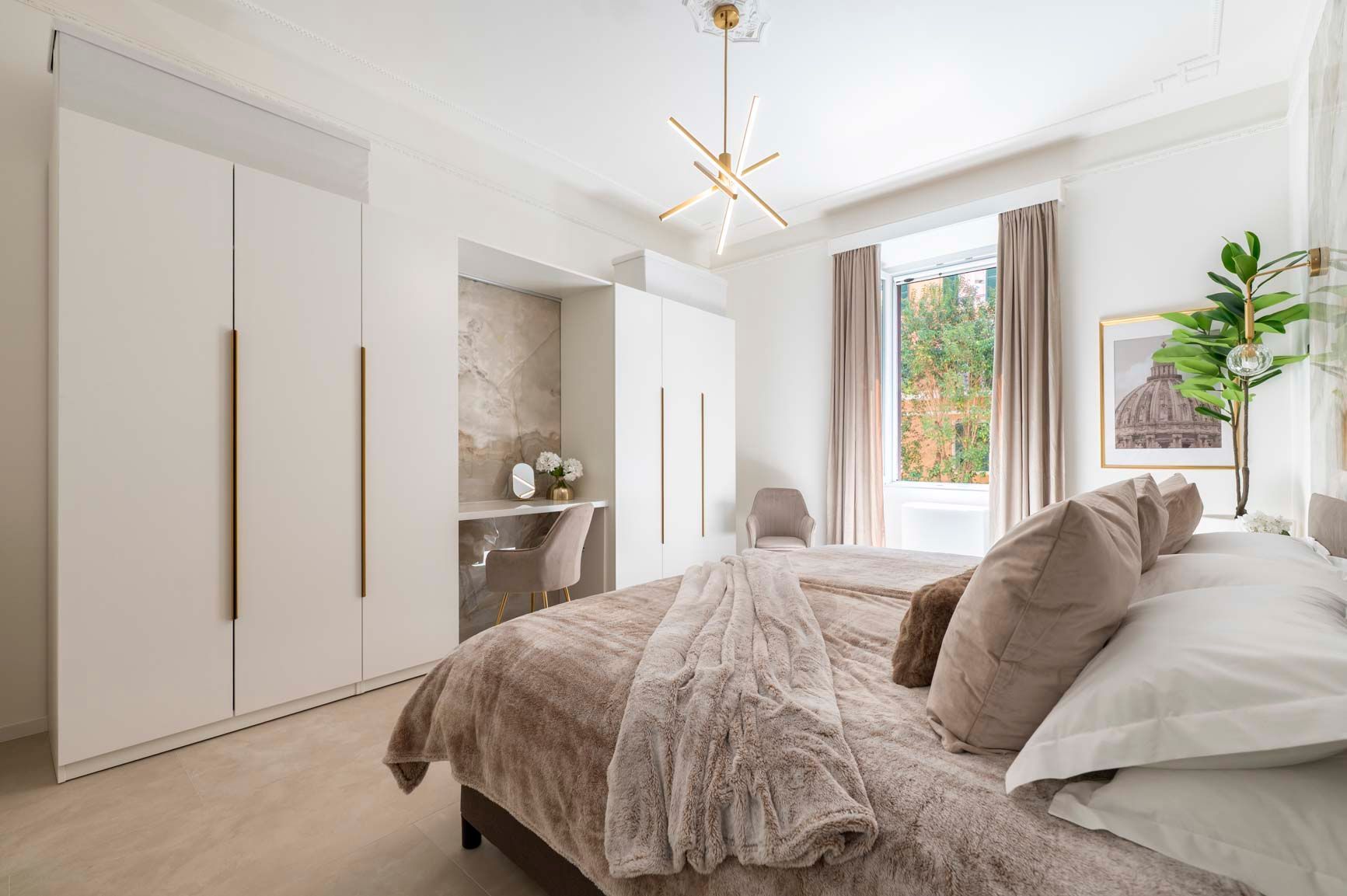 Roma Elegante, 5 star comfort in this the absolutely perfect place to stay in Rome whether for Business or pleasure. This rare, and sophisticated, large three bedroom apartment in a gracious building in the upscale Prati neighborhood of Rome has the comforts of a the best hotels, with the conveniences of a fine home. Just a leisurely stroll from the iconic Vatican and surrounded by excellent local restaurants, gelaterias, and boutiques, this stunning apartment offers a perfect blend of modern luxury and historic charm for discerning travelers.