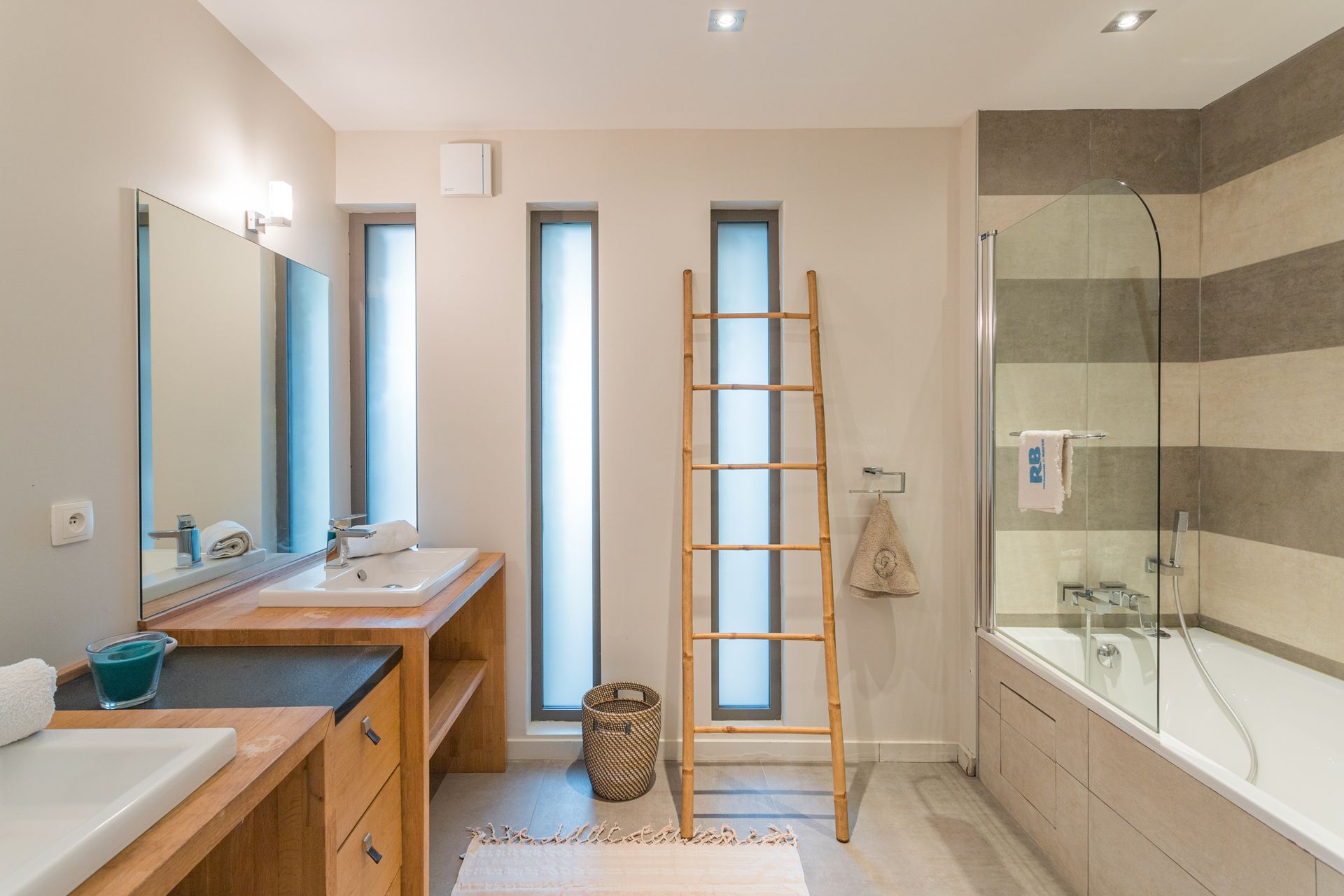 Inspired by traditional architecture, this beautiful architect designed home blends modern elegance with a warm, inviting atmosphere. The natural light floods through large sliding doors and skylights, creating the kind of positive ambiance that just makes you feel at one with the world.. The villa spans two levels, thoughtfully separating the living and sleeping areas to ensure comfort and privacy, all while offering over 400 m² of space to gather and unwind.
