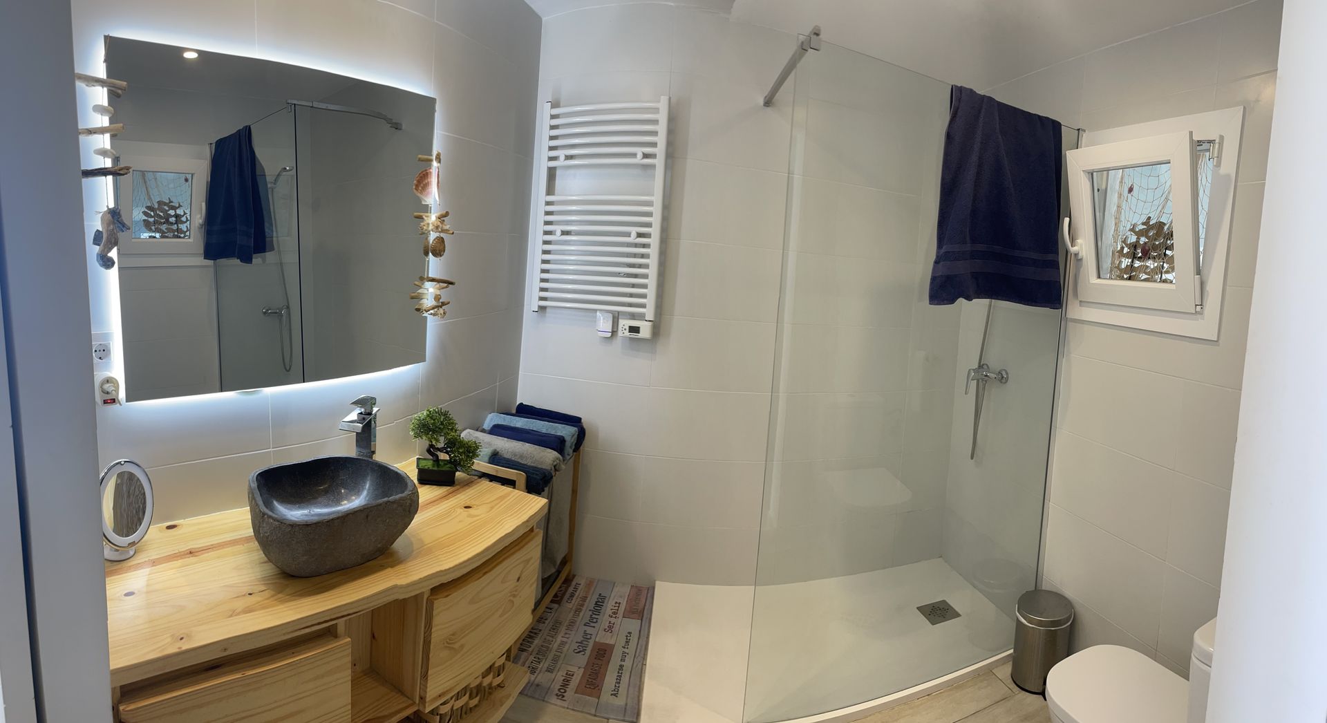The charming Villa Penelope, a villa of privilege on the sun-drenched island of Menorca. It is only minutes away to a wonderful beach and the calm waters of the Mediterranean. Villa Penelope offers the most dreamy views of the sea and the mountains to set the mode. An infinity pool confirms that every care has been taken to offer the best The interior of the house has an undeniable Menorcan style with a maximum capacity of 8 people. The house has 4 bedrooms, 5 beds and 2 bathrooms. The villa has high speed internet, Smart-tvs and close to the house you will find restaurants, pharmacies, gyms, etc.