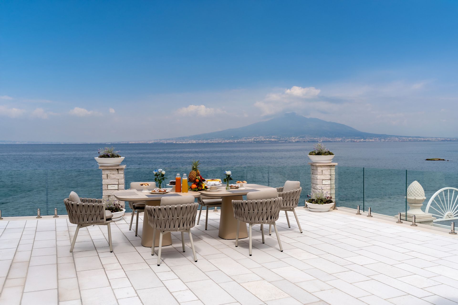 The Villa spans two levels and enveloped by an expansive garden while featuring breathtaking views of the Mediterranean sea and of Mount Vesuvius. Each room is bathed in natural light, while refreshing sea breezes refresh the terraces, seamlessly integrating the horizon into the home's architecture. The bedrooms and suites are a delight with five spacious, sea-view bedrooms, all with en-suite bathrooms. All bathrooms feature walk-in showers, plush bathrobes, slippers, hairdryers, and a complete courtesy kit.